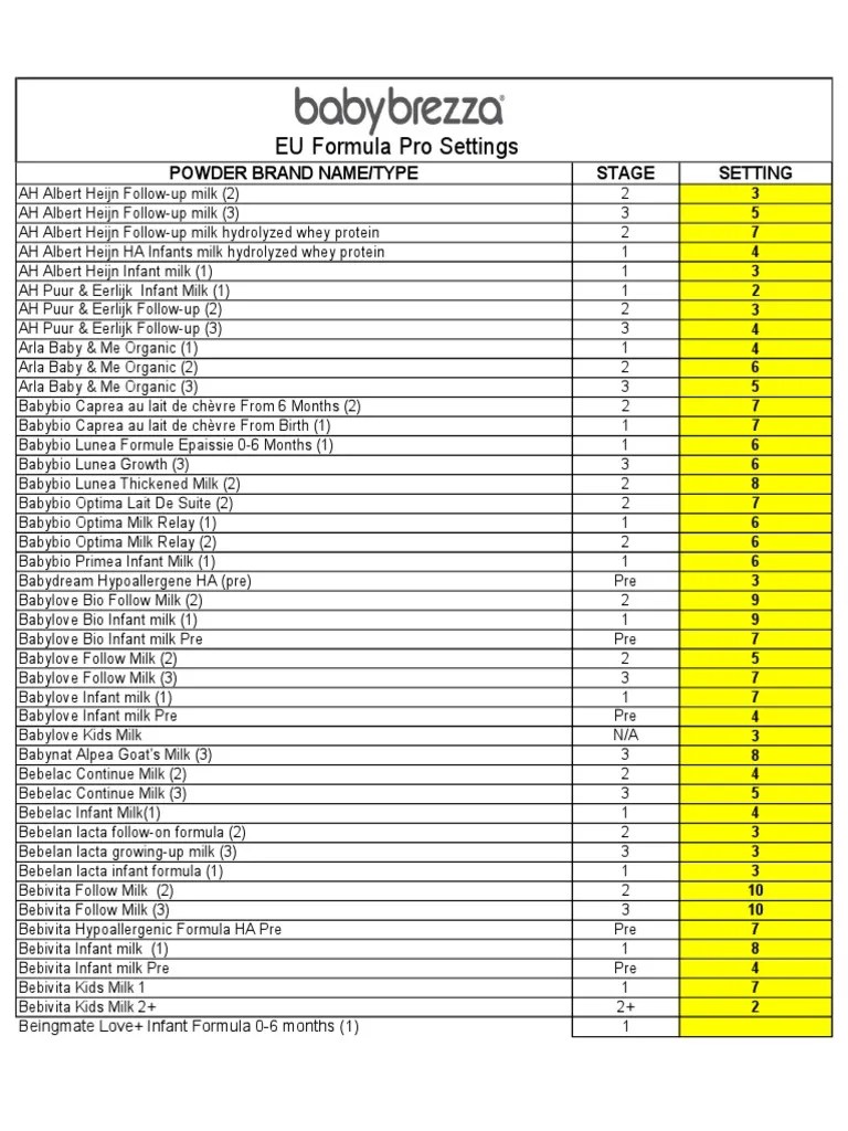 Web brand name age range stage wheel setting stage 1 alimentum with omega 3 & 6 (allergies & colics) 0+ 1 7 iron fortified 0+. Discover baby brezza setup guidelines for your. See the official accuracy test results and the difference. Web the appropriate baby brezza formula pro powder settings for your formula can be found in 4 easy steps,.