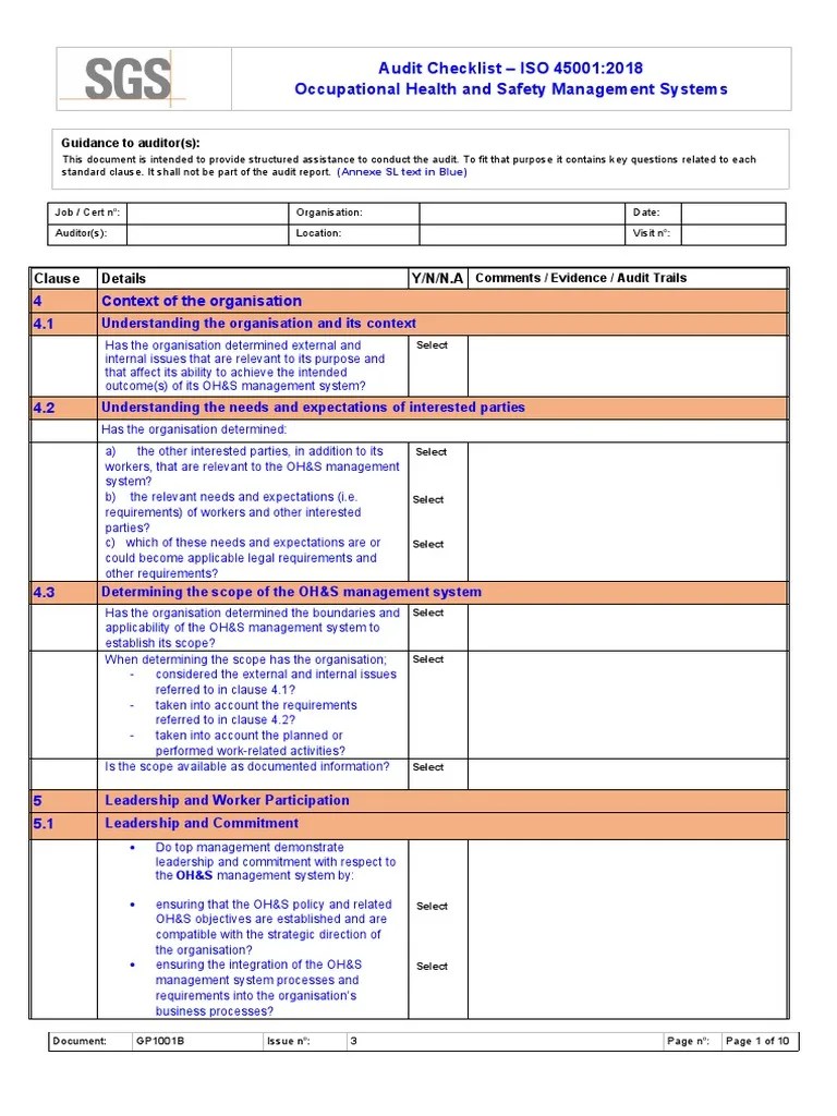 Audit Checklist ISO 450012018 Occupational Health and Safety