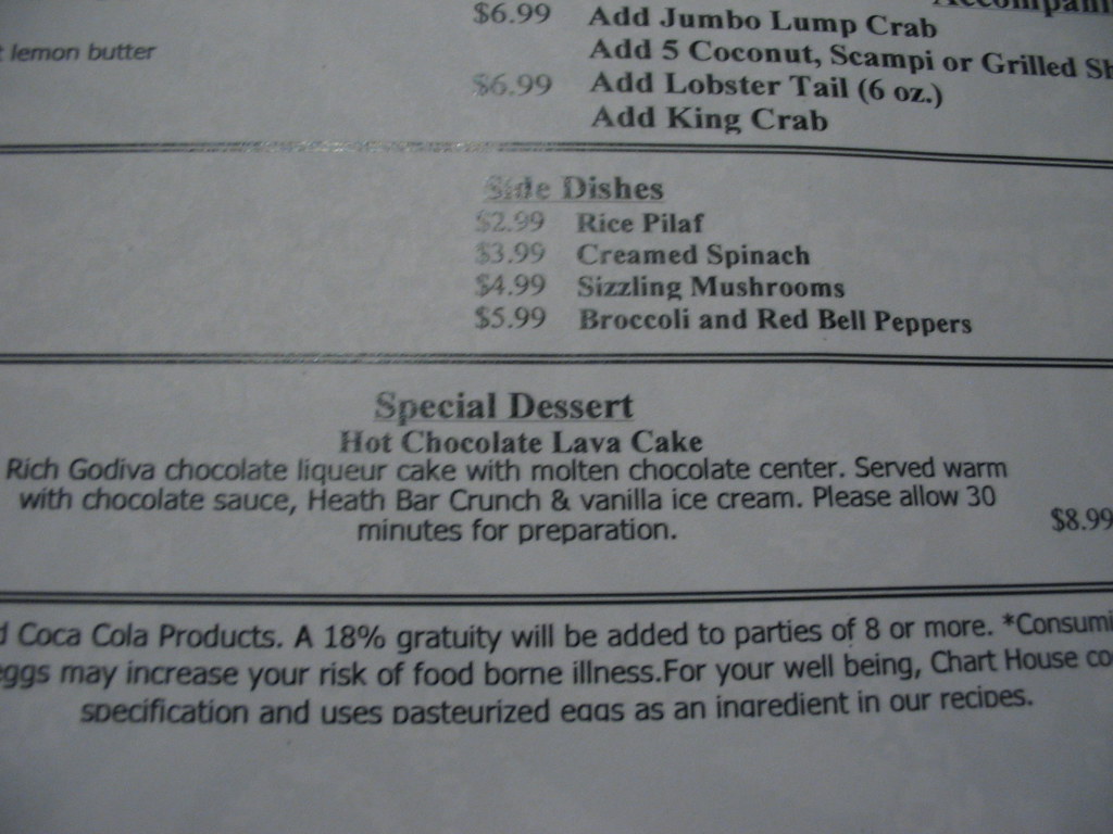 Menu at Chart House steakhouse, Weehawken, Harbor Blvd