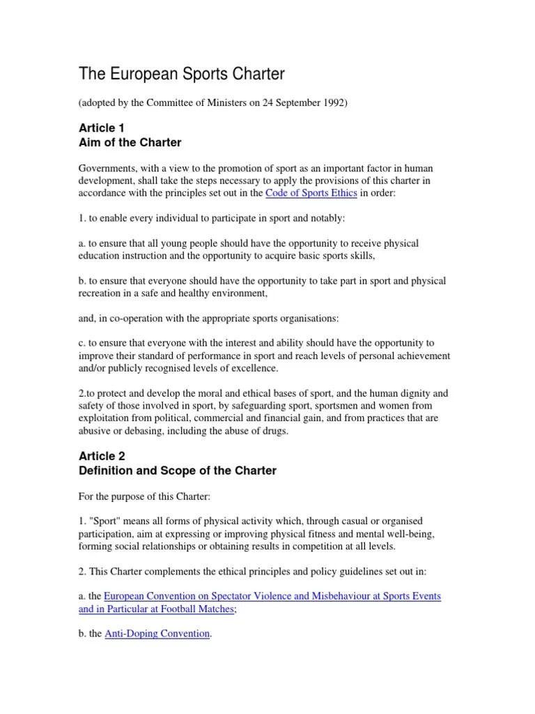 The European Sports Charter.pdf PDF Sports Sustainable Development