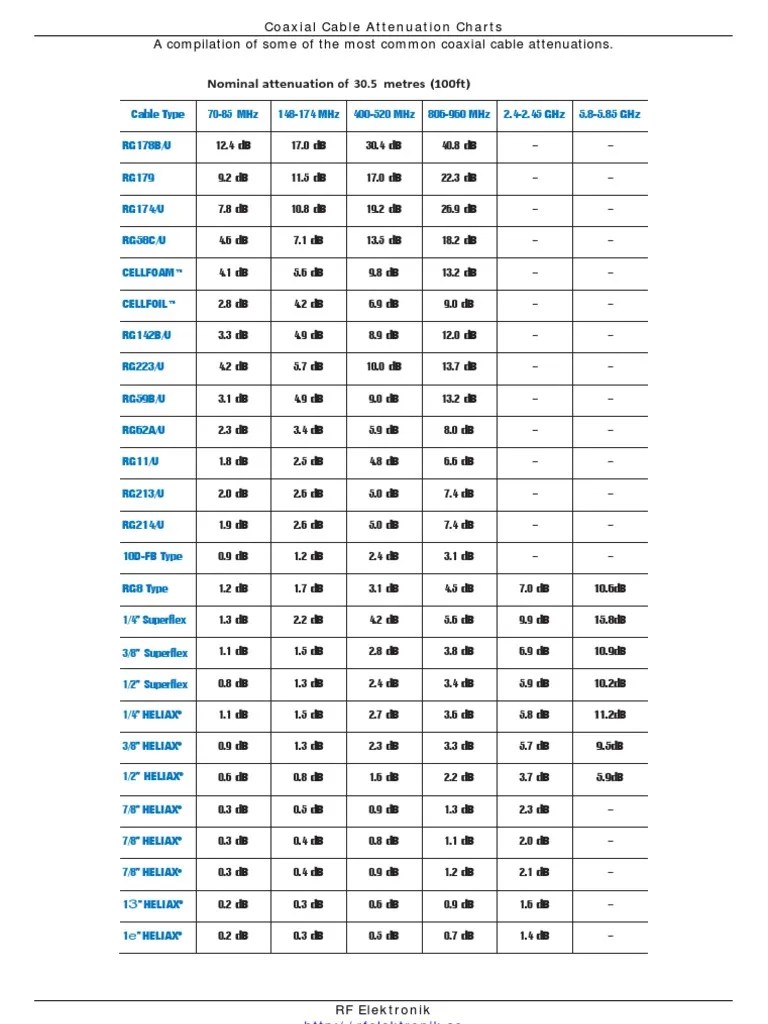 Coaxial Cable Attenuation Chart PDF Coaxial Cable Decibel