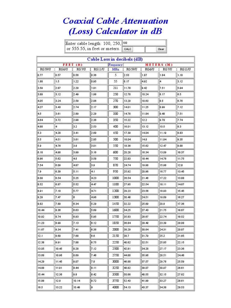 Coaxial Cable Attenuation Calculator Attenuation Decibel