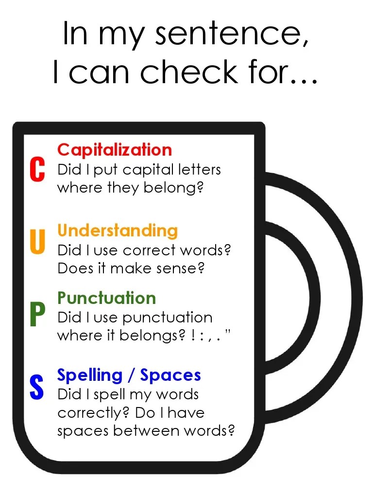 These anchor charts guide the students through the editing and. Mini anchor charts for both cups and arms (perfect for notebooks!). Web the cups and arms is the edit and revising part of the process. Web acronyms remind students to proofread and edit parts of their writing. Web cups & arms revise/edit checklist.