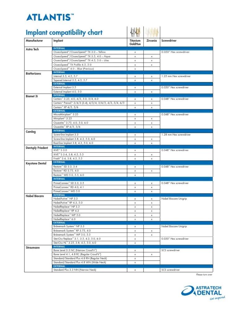 Atlantis Implant Compatibility Chart 79214US1107 PDF Dental