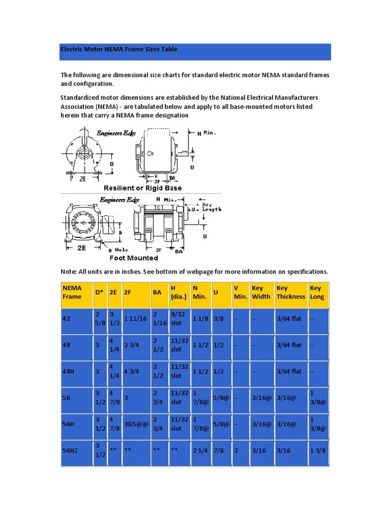 Electric Motor NEMA Frame Sizes Table.pdf Manufactured Goods