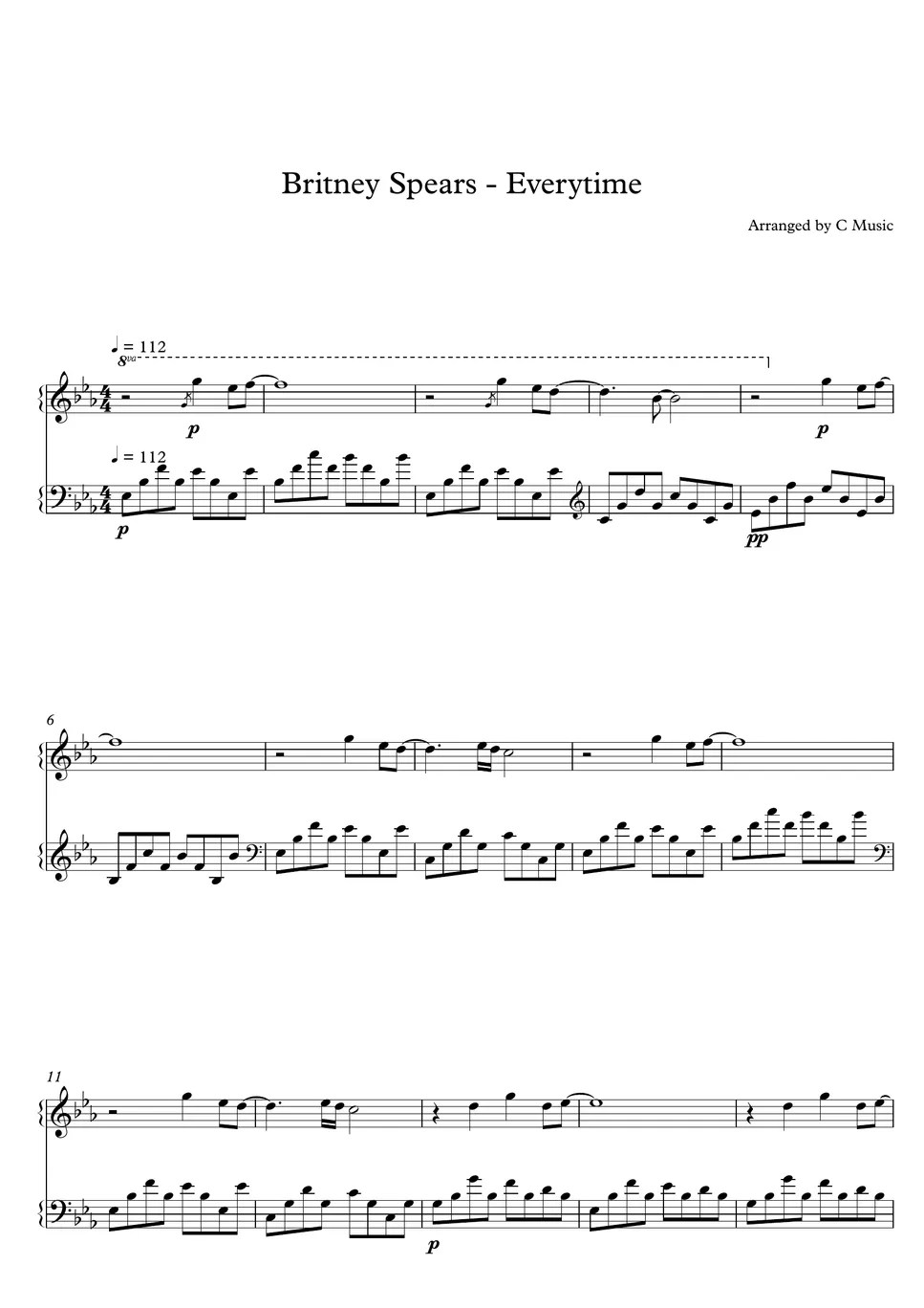 Britney SpearsEverytime Sheet Music pdf, Free Score Download ★