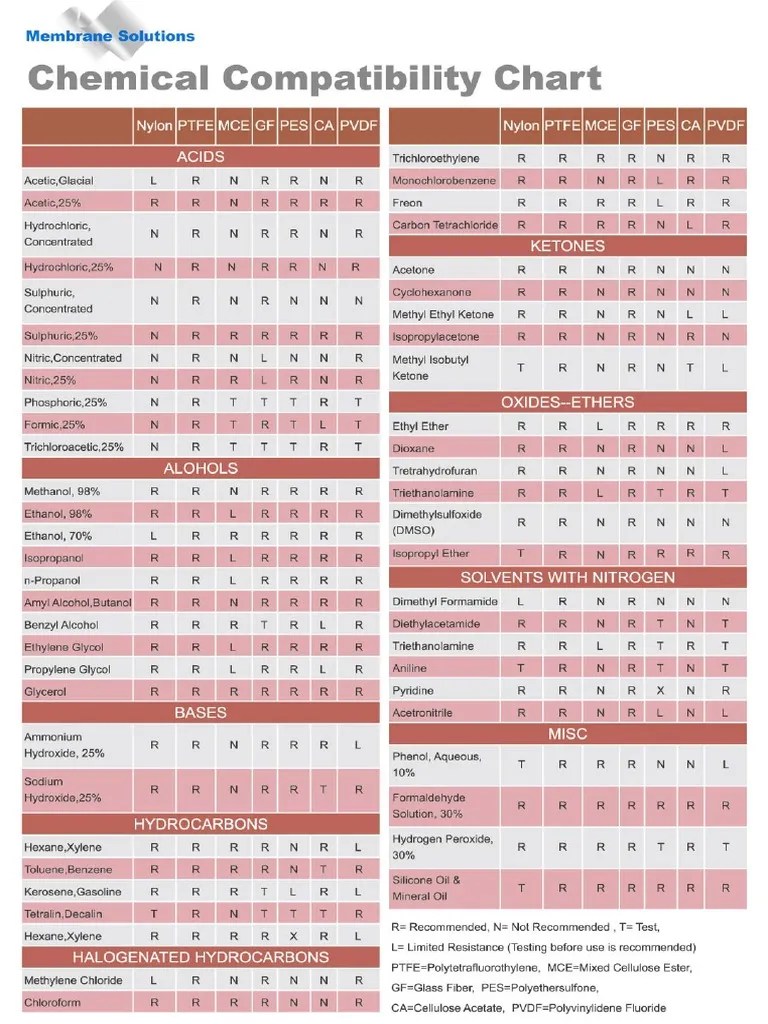 Filter Membrane Chemical Compatibility Chart A Visual Reference of