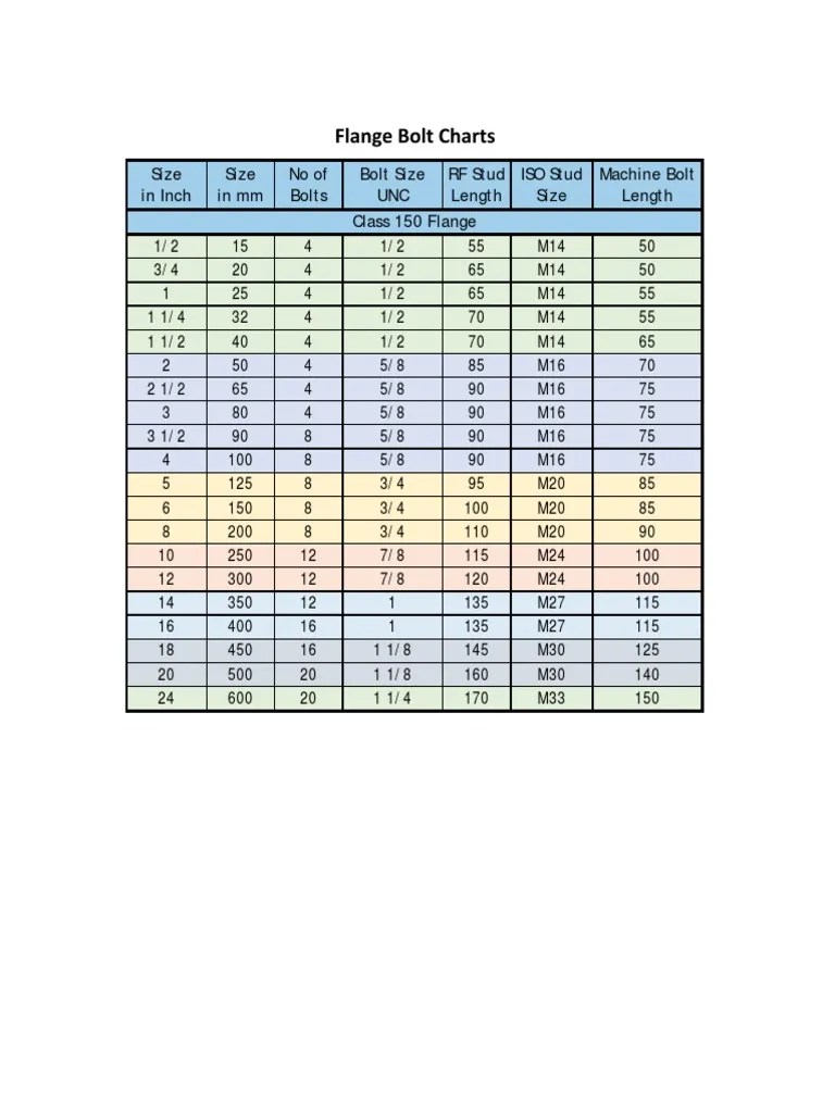Stud Bolt Chart For Flanges