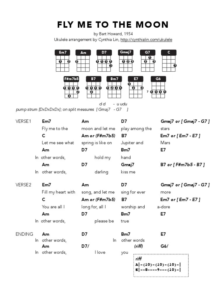 FLY ME TO THE MOON Ukulele Chord Chart PDF Song Structure