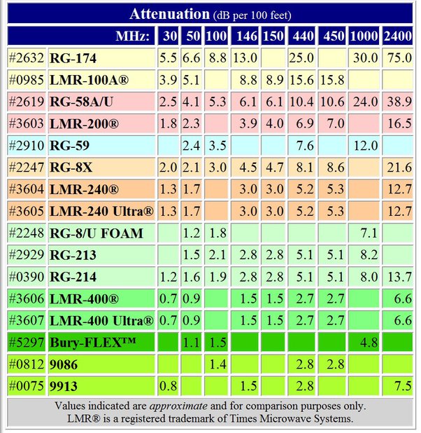 Ham Radio Coax Cable Loss Chart Ultralight RadioDxer
