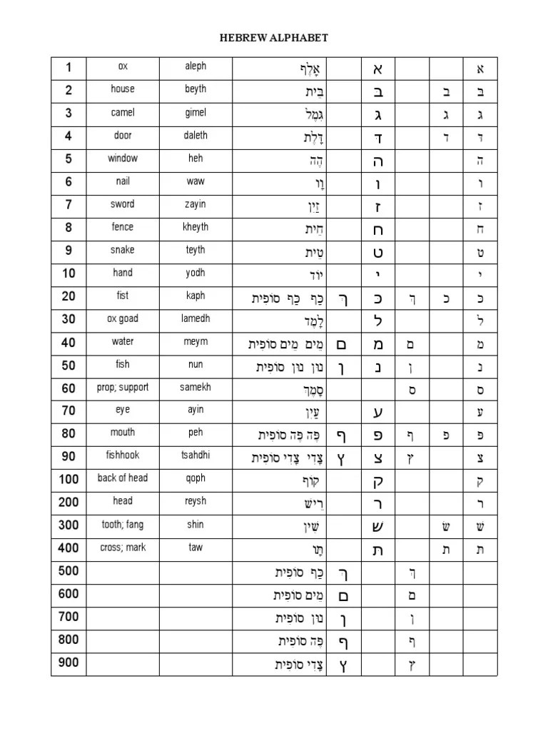 Learn how to pronounce, write, and remember the hebrew letters with fun. Web hebrew alphabet pdf chart. Web pointers for learning the hebrew alphabet 1. Web a printable hebrew alphabet chart with explanations and examples of each letter. If you enjoyed this article, we encourage you to distribute. Web 4 the hebrew alphabet has a unique feature known as gematrtya, in which every letter is assigned a numerical value. © copyright, all rights reserved. Web the hebrew alphabet, the holy language of the bible, is used for biblical hebrew, modern hebrew, jewish aramaic, yiddish, and ladino. Web learn the hebrew cursive and print styles alphabet and the biblical hebrew writing style with these easy to use charts that assume you have zero knowledge. The vowels go under the consonant, so you must first.