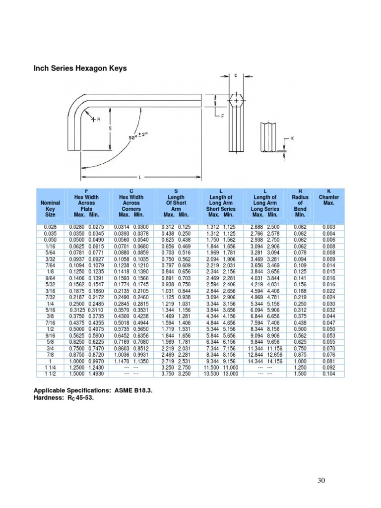 Hex Key Dimensions PDF Equipment Mechanical Engineering