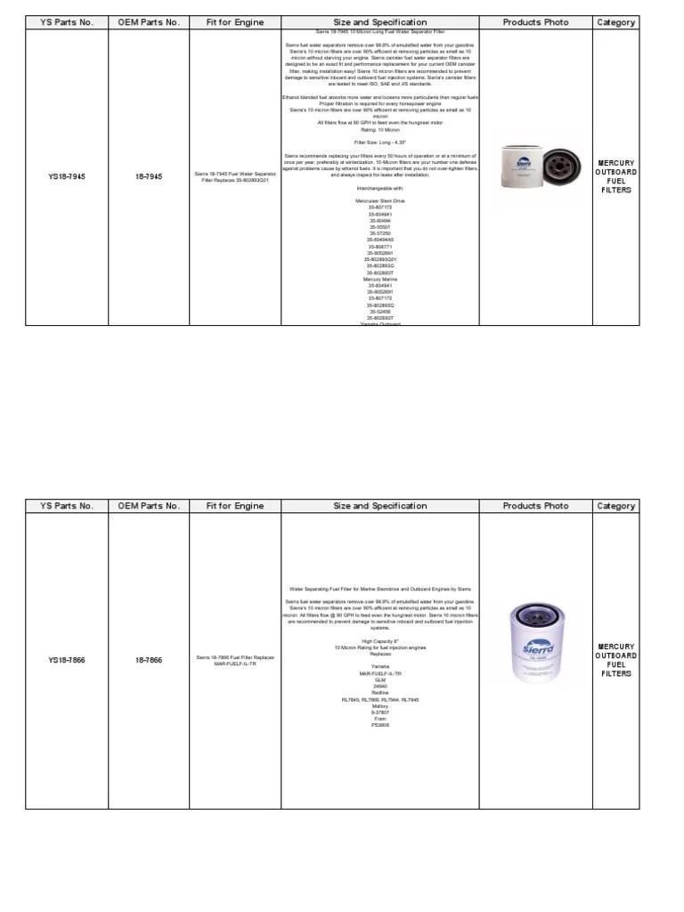 Mercury Outboard Fuel Filter Chart