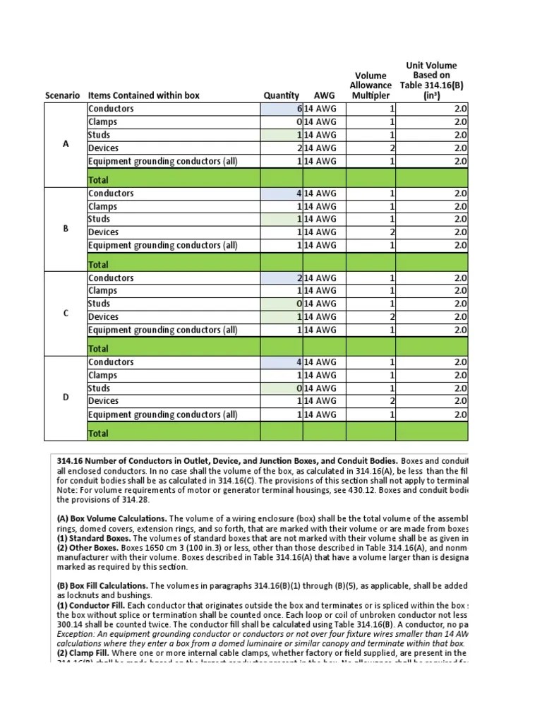 Nec Box Fill Chart - Web calculate the total box fill volume for electrical utility boxes according to nec code. No matter how many ground wires, they only count as one conductor in the box. Web learn how to do a box fill calculation for electrical installations according to the 2017 national electrical code. Two sections refer to box fill calculations:. Web article 314 contains detailed requirements for box fill and junction box sizing. Web every outlet box has a specific amount of space for conductors, devices, and fittings. We call that the box volume. Web use this tool to calculate the minimum box size for electrical wires according to nec 314.16 (b). Enter the number and size of. Enter the required parameters such.