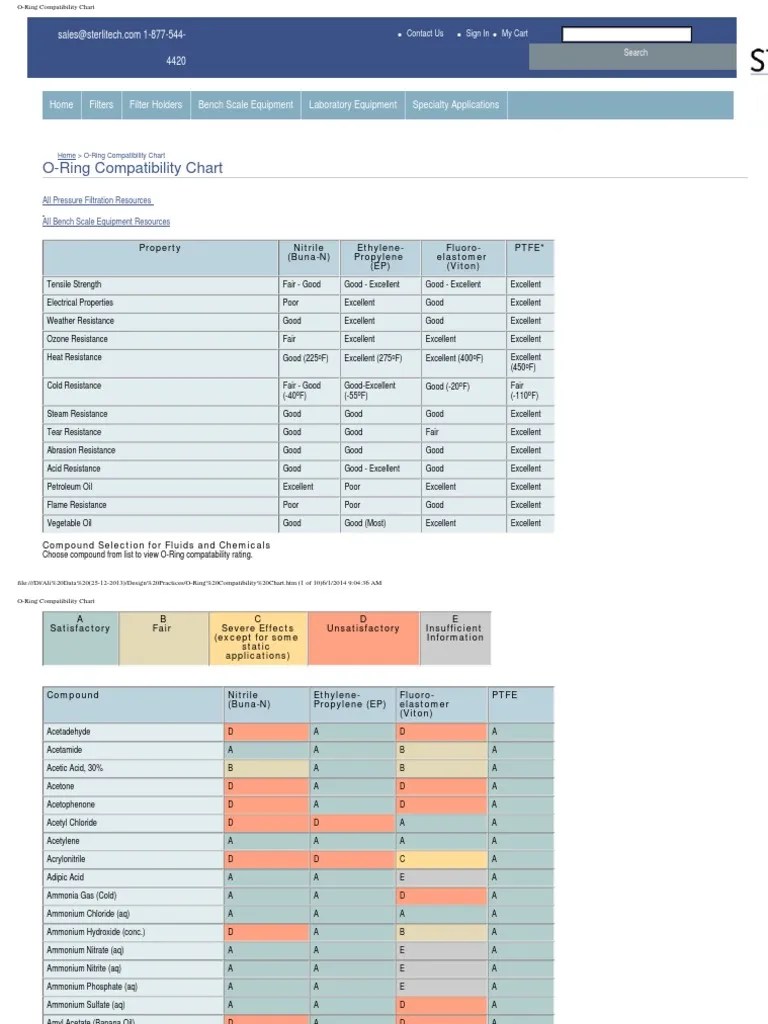 ORing Compatibility Chart All Pressure Filtration Resources All Bench