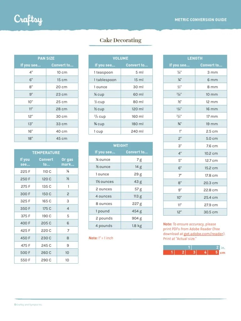 Cake Decorating Metric Conversion Guide PDF Ounce Teaspoon