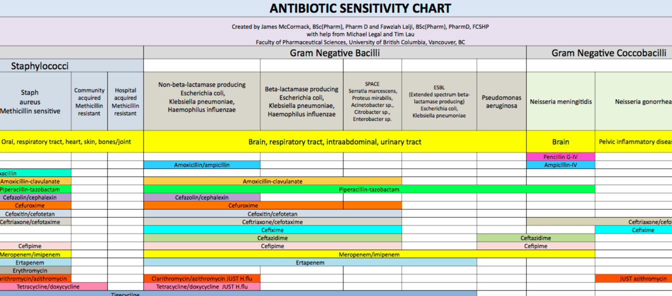 Pharmacy Student Antibiotic Coverage Chart - Web this text and table is intended for use as a study tool to assist people learning pharmacotherapy of common bacterial infections. Web when it comes to memorizing spectrum of activity for antibiotics, i first learn the rules for a class of antibiotics, then i focus on. Created by james mccormack, bsc(pharm), pharm d and fawziah lalji, bsc(pharm), pharmd,. Web for clinical decision making, please consult an infectious disease physician, pharmacist, and/or peer. Web antibiotic bug drug table for pharmacy students and medical students to help with naplex and cpje/mpje, step 1. Web kucers' the use of antibiotics. Mandell, douglas, and bennett's principles and practice of infectious diseases. Web cloxacillin and clindamycin typically have less than 40% activity for s.epidermidis, thus usage depends on local susceptibility data. Web to provide a simple study guide that can be useful for identifying what drugs are commonly considered for a given bug, i have developed the following.