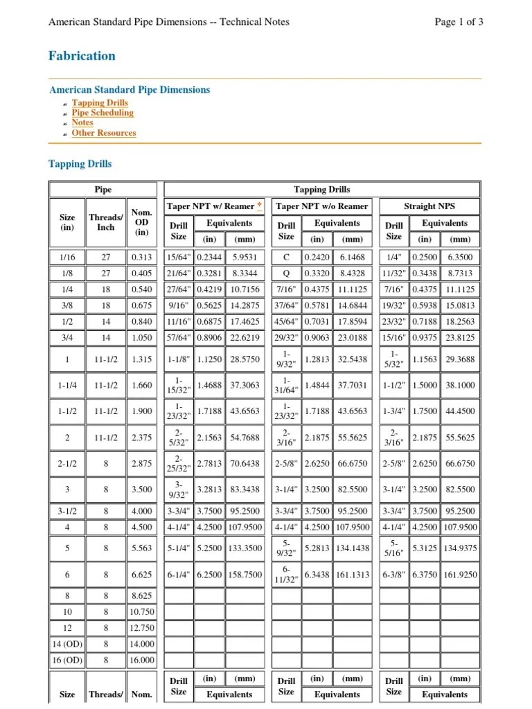 Web 34 rows npt thread chart for basic dimensions of general purpose npt pipe threads (inch) according to ansi/asme. Web 27 rows pipe size is the accepted industry designation and does not refer to either the inside or the outside diameter (id or od) of a pipe or a fitting. Web the jargon, calculations, and charts that define npt threads.