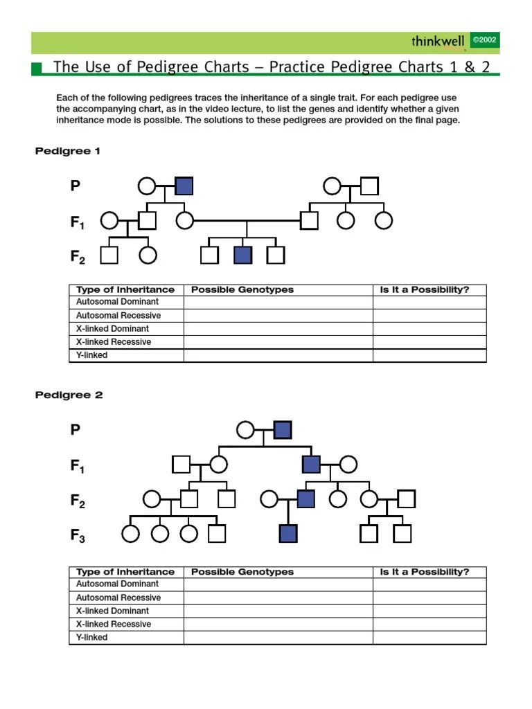 On such a chart, males are. Web human geneticists illustrate the inheritance of a gene within a family by using a pedigree chart. In a pedigree, a square represents a male. Web the pedigrees in this quizlet trace the inheritance of the allele that causes the affected trait. This worksheet looks at pedigrees in families with albinism.