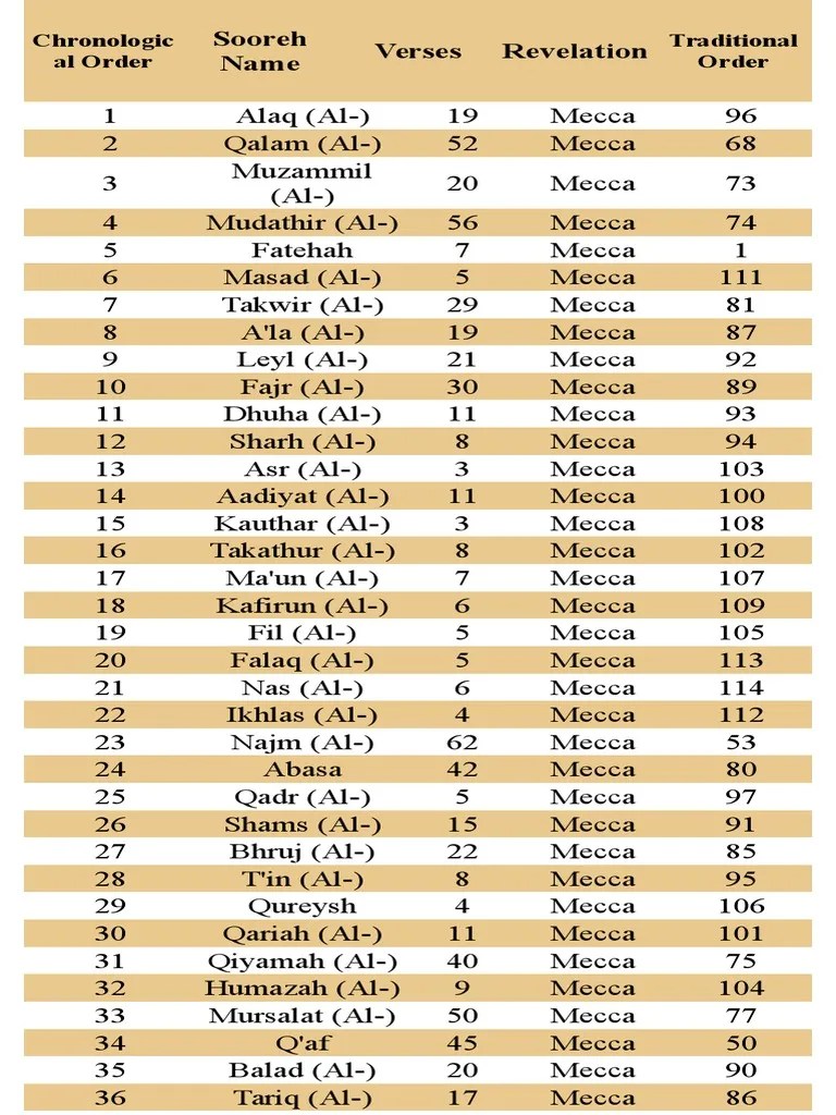 quran verses in chronological order