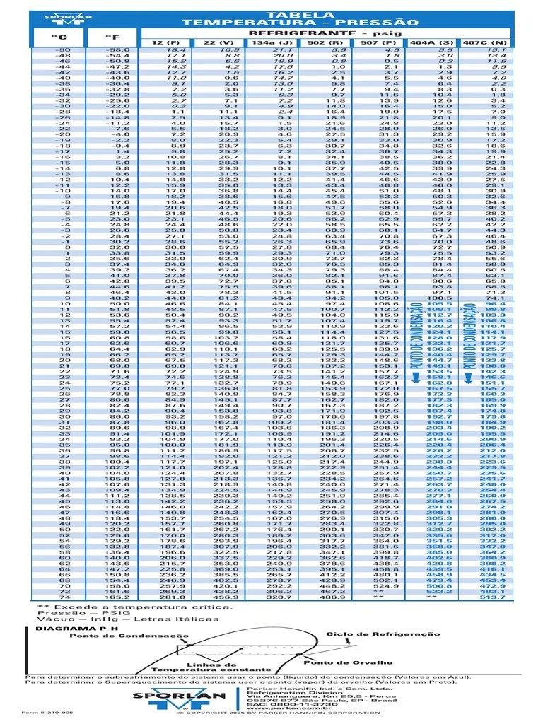 Tabela__Temperatura_x_Pressao_R12_R22_R134a_R502_R507_R404a_R