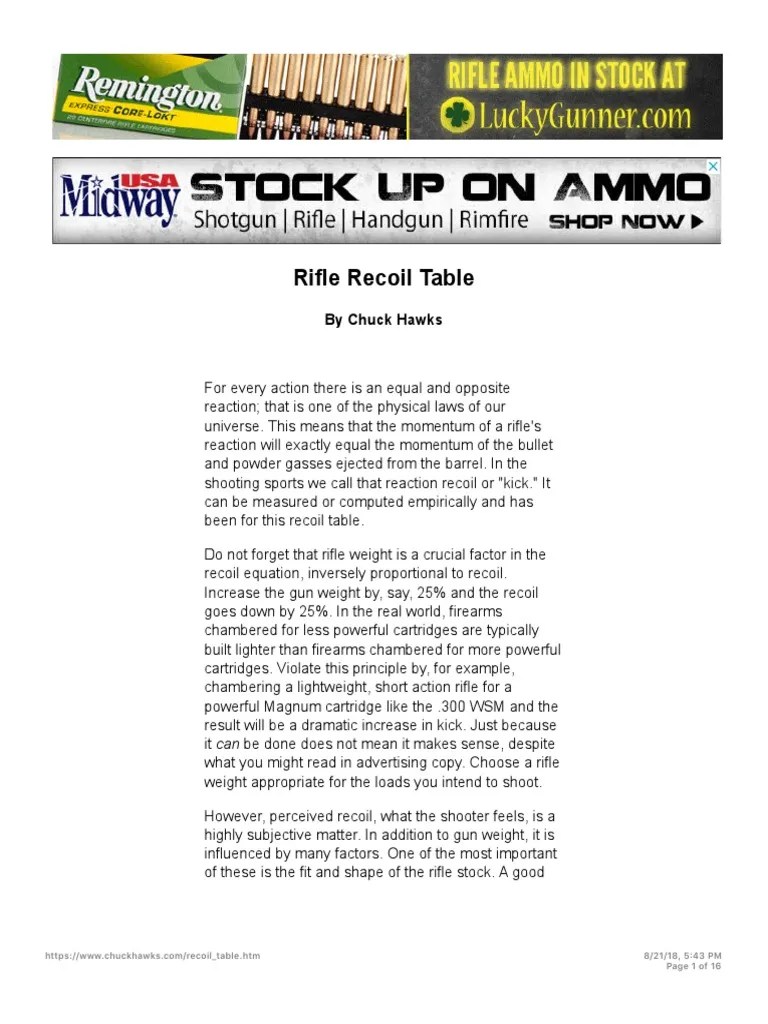 Rifle Recoil Table PDF Rifle Cartridge (Firearms)