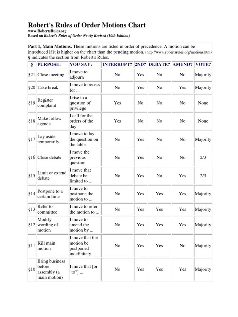 These motions are listed in order of precedence. Web robert’s rules of order public comment facility provides citizen input on local government meetings. Web robert’s rules of order, which is also widely known as parliamentary procedure, was developed to ensure. Web robert’s rules of order: Web robert’s rules of order, which is also widely known as parliamentary procedure, was developed to ensure that meetings are. Chart of motions & procedures. This article explains how it works and. Web robert's rules of order motions chart. Motions are listed in order of precedence. Web robert's rules of order, which is also widely known as parliamentary procedure, was developed to ensure that meetings are. Web robert's rules of order motions chart pdf of this chart. Web robert's rules of order motions chart. These motions are listed in order of precedence. These motions are listed in order of precedence.