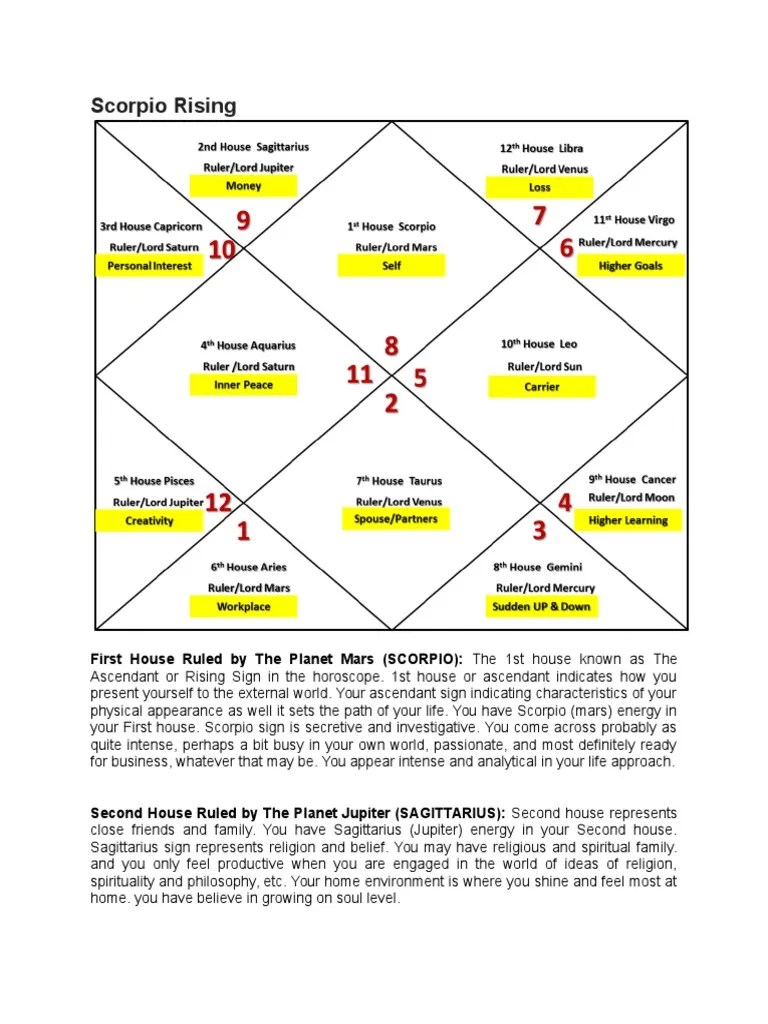 Scorpio Rising House Chart - Web if your ascendant/rising sign is scorpio, then you have a water sign overlaying a fire house. Use our cosmic calculator to discover what zodiac sign the ascendant was in when. Discover how it can influence your personality,. Web (you can find out your rising sign using a free birth chart calculator.) your rising sign also governs the structure of. Scorpio rising sign meaning and personality traits. Web if you were born with scorpio rising, you’re in the right place to quickly see the layout of your birth chart in whole sign houses. Web curious about the meaning of scorpio rising in your birth chart? Web to be a scorpio rising means the sun was rising over the eastern horizon in the sign of scorpio when you were born. Web are you a scorpio rising? Here are the most important.