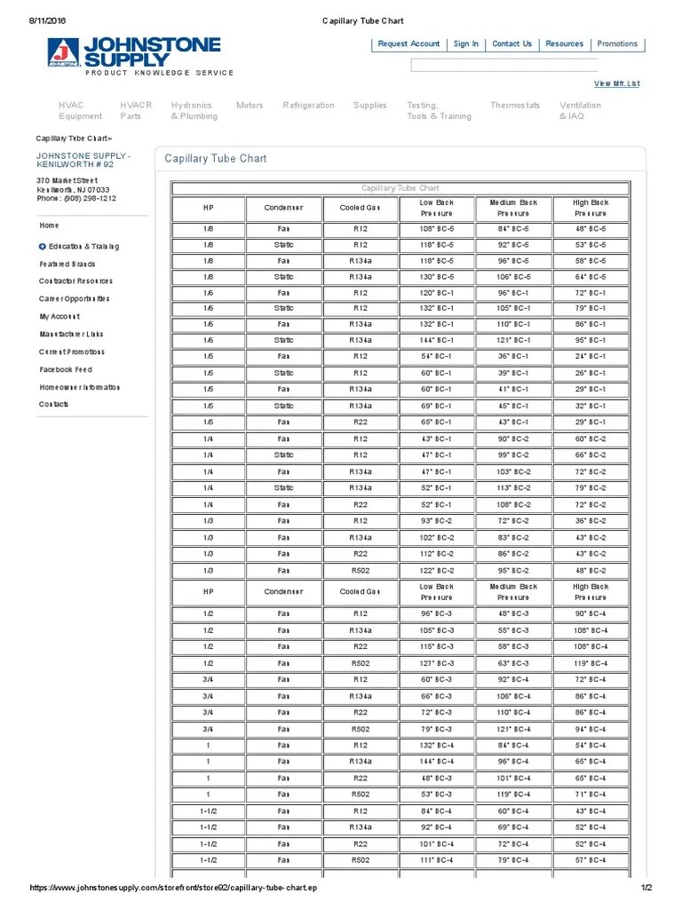 Web devide hp by number of feeds, go to single feed chart, select a cap tube for the calculated hp and use that selection for each feed.• ex: Web the recommended capillary tube is.046 x 120 find 0.046 in the left column read across to 0.595 [bc42] or 0.783 [bc44] or. Web reference chart for bullet ®“restricto” capillary tubing for.