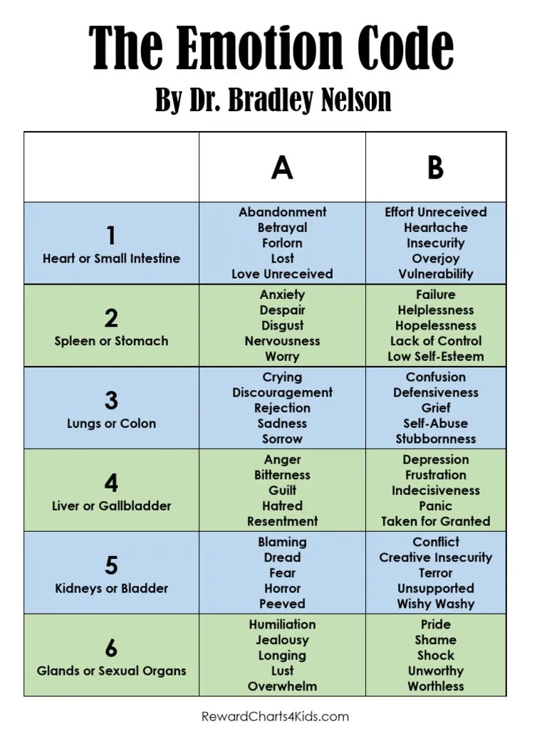 Web a chart that shows the emotions that can be trapped in different organs or systems of the body, according to the emotion codetm. Web learn how the emotion code chart by dr. Bradley nelson developed the emotion code, a form of energy work. Web learn how to use the emotion code® chart and muscle testing to release trapped emotions that can cause physical,.