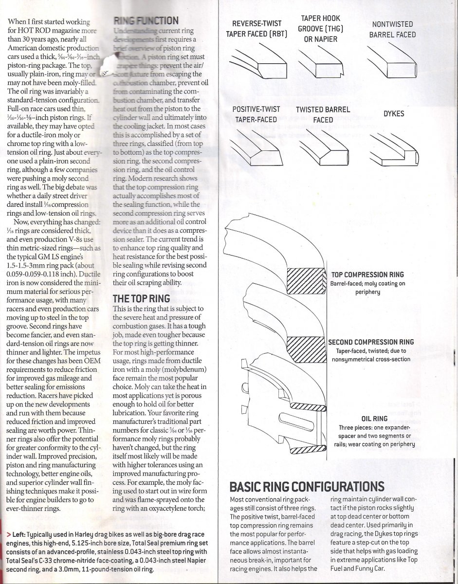 See total seal's lake speed jr. Explain the functions and orientations of the top, second, and oil rings, and watch the video for more details. Rings and rails are carefully machined to fit together and are not interchangeable with other total seal.